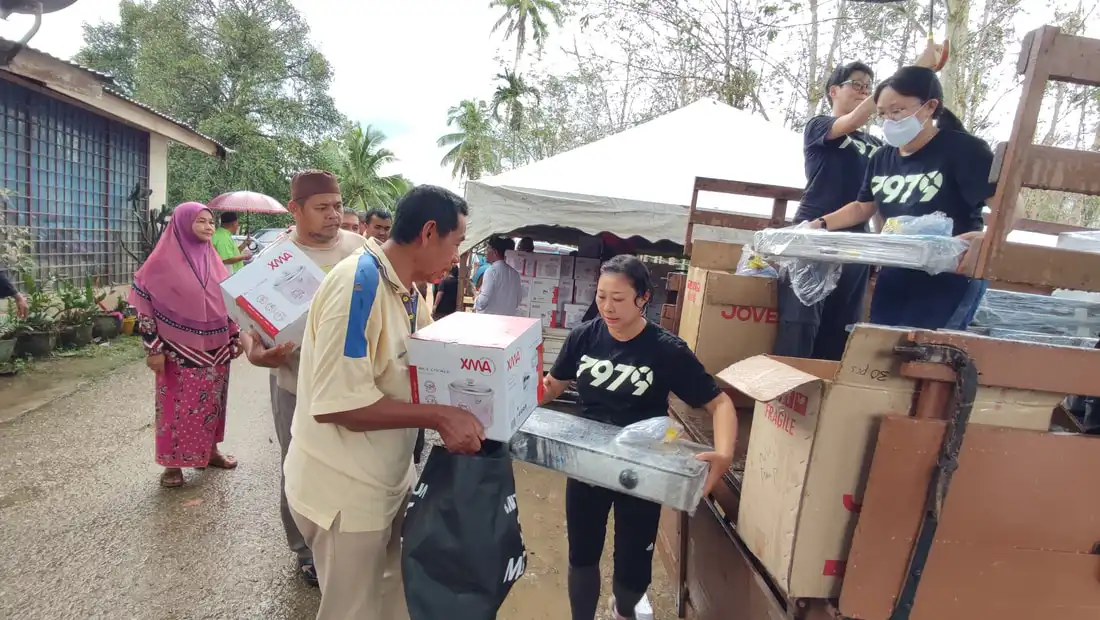 第三,太子园重灾区是7979的邻舍,距离办公室不超过10公里,是我们锁定关心、回应的地方。水退第一天,与同工前往勘察时,却在关键路口被截停。由于过多车辆造成堵车,我们被迫打道回府。回程时,我告诉同工,我们该联系当地教会。一回到办公室,就接到位于灾区的莎亚南福音中心的Dexter长老的来电,询问配搭应灾事宜。隔天会面时,我们一见如故,原来几天前我们见过两次面,仅点头打招呼。我们原互不相识,却能在此刻合作,算是神圣的相遇吧。