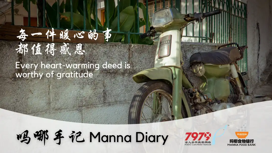 Motorcycle is the only means of transportation to Ryan’s (pseudonym) family. Every day, Ryan sends his eldest daughter to work on his motorcycle before he heads to work while the rest of his children go to school in a school bus. Ryan is a welder; but during the pandemic, his workload reduced tremendously, thus he only worked for two or three days a week. Christian Praise Centre 7979 Holistic Care Station provides the family with food aid through the Manna Food Bag program every two months.